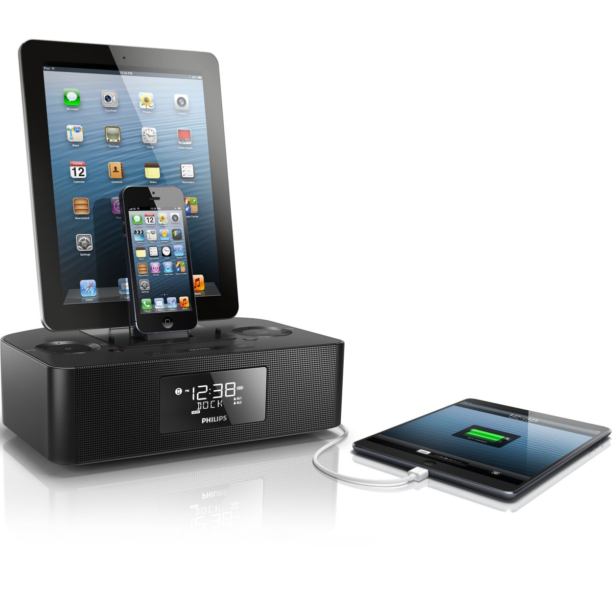 استيقظ على نغمات الموسيقى التي تفضلها. حدد محطة الراديو المفضلة لديك أو اختر نغمات مهدئة من جهاز iPod/iPhone/iPad واجعل صباحك مختلفًا كل يوم. تبدأ الساعة في تشغيل ما اخترته بلطف ويتزايد مستوى الصوت تدريجيًا حتى تصل إلى مستوى الصوت الذي اخترته. والآن يمكنك التحكم بطريقة استيقاظك وبدء يومك بطريقة صحيحة في كل مرة.