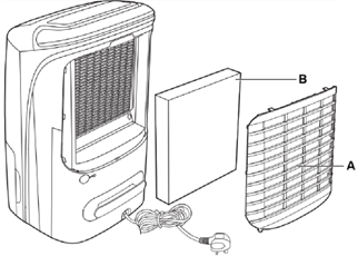 The pre-filter (indicated as A in the image below) is integrated with the rear cover of your appliance. When the filter cleaning alert displays, please clean the pre-filter under the tap or with a vacuum cleaner. The filter (indicated as B) is not washable nor reusable, please replace it when the replacement alert appears on the screen.