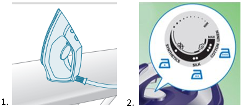 Please make sure to set the temperature to the steaming zone (2-dot or above) on the temperature dial as shown in the image below (2) before releasing steam. Then, let your Philips Steam Generator Iron heat up in heel-rest position (1) for one minute before you resume ironing.